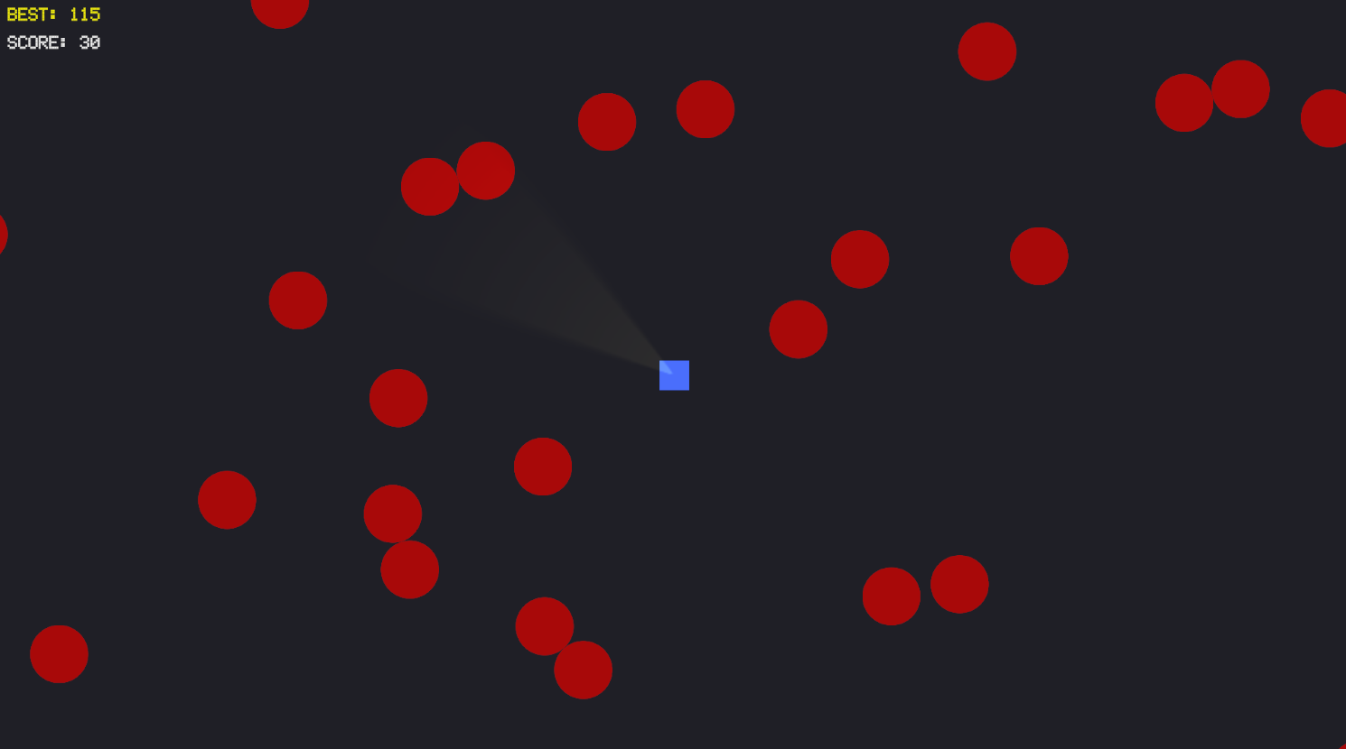 You’re a tiny blue square trapped in a pitch‑black arena, with only a narrow flashlight beam and a single bullet between you and the creeping red shapes that stalk the edges of your vision. Freeze enemies in your light, time your shots, and survive as long as you can across four difficulty modes that ramp up the pressure and track their own best scores.